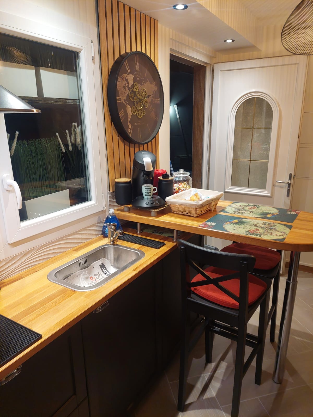 Feel like at your own « pied à terre » or base in the dynamic neighborhood of Pantin. Renovated loft-style apartment with a separate bedroom, just one minute from Hoche metro (Line 5). You can get to the city center in 15 minutes. Ideally located near Parc de la Villette, the Philharmonie, the canal, and Hermès offices. The apartment features a cozy living area, comfortable bedroom, boutique hotel-style bathroom with Italian shower and anti-fog mirror, and a fully equipped kitchen.
