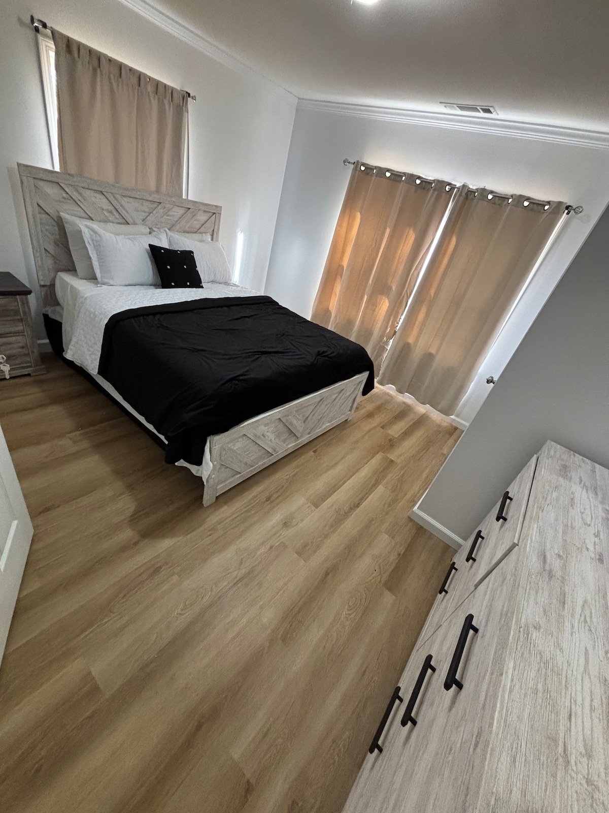 • 1-bedroom home with rustic charm, open layout, and workspace • Modern bathroom with rainfall shower and premium fixtures • Fully equipped kitchen with utensils and refrigerator • Covered front porch for relaxing or remote work • Quiet small-town setting, 30 minutes from Albany, GA • Ideal for long-term stays — great for remote workers, travel nurses, or contractors • This is Unit A — book both units for crew or group stays • Fast Wi-Fi and monthly discounts — message for details
