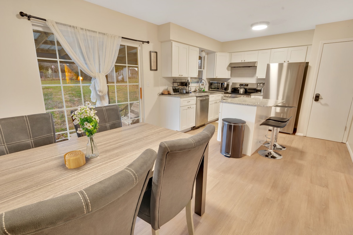 Beautifully remodeled 40s home with lots of original character. This single family home is perfect for a small town stay, yet close to Lake of the Ozarks, Fort Leonard Wood, and Springfield. Or vacation here to enjoy our beautiful state parks like Bennett Springs or Ha Ha Tonka. The space Entire house 1000 sq ft 2 bed 1 bath with basement. Private driveway, Central heat and air, custom kitchen cabinets, brand new appliances and windows, everything has been freshly painted inside and out