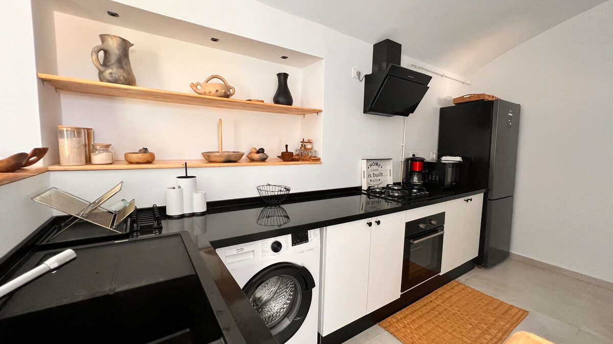 Villa in the calmest spot of Hammamet with a huge garden and big PRIVATE pool and patio. Equipped with a full list of amenities, stylish design and decor for a magnificent stay in the calm side of the mountain of Hammamet. Fire place in the living room and a fire pit in the garden for a warm moment with family and friends. Located in between Only 5 minutes drive to downtown and the beach and 5 minutes to the highway leading to Tunis and Nefidha Airport. A Padel tennis court is just few steps.