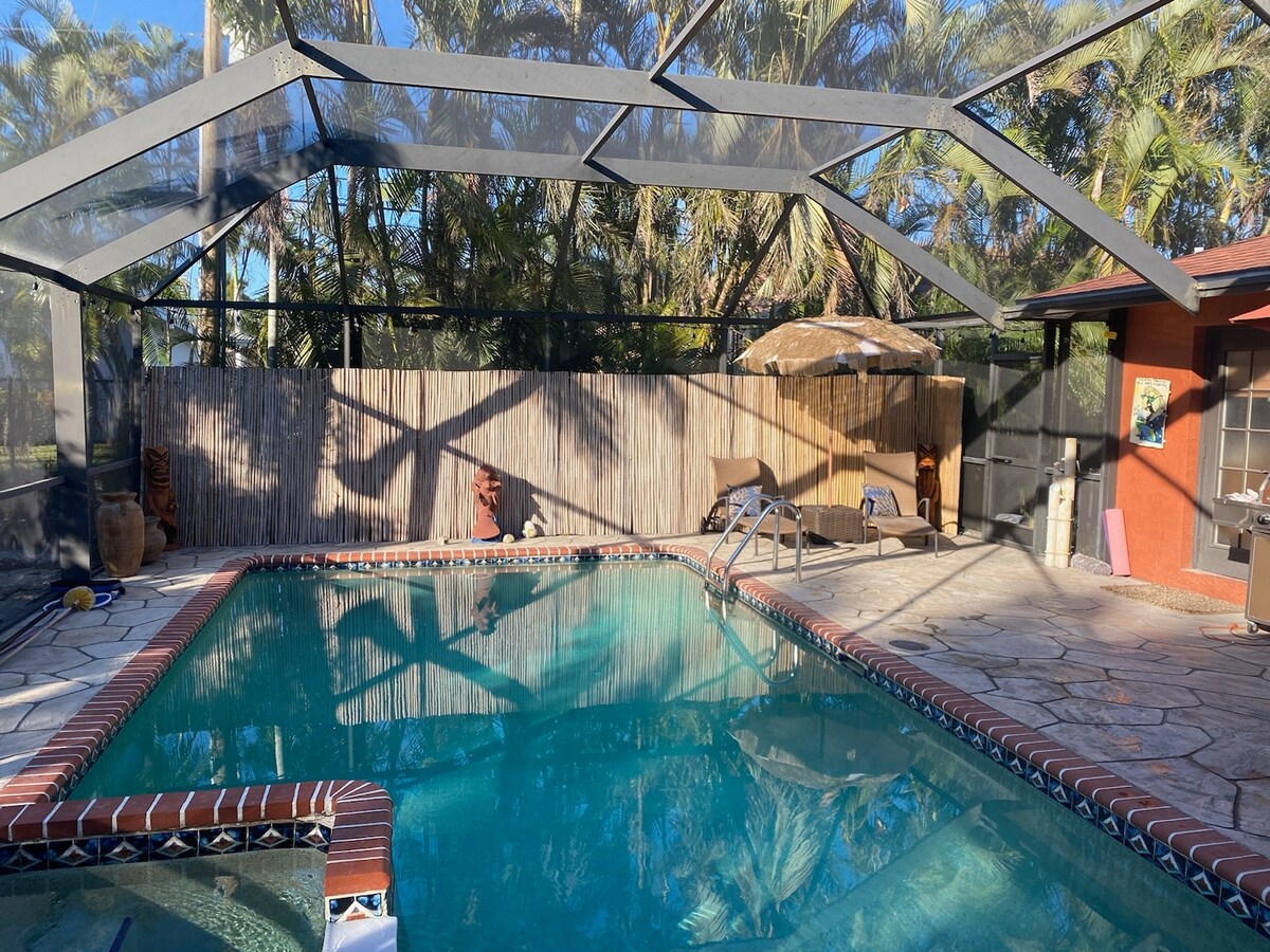 Escape to our charming private guest cottage, just 1.5 miles from Bonita Beach! This updated studio comfortably fits 2 guests and features a king bed, a fully equipped kitchen, and a large screened-in lanai. Enjoy modern comforts with a coastal vibe, complete with beach bikes and a private entrance. Perfect for a quiet, relaxing beach getaway in a safe neighborhood.