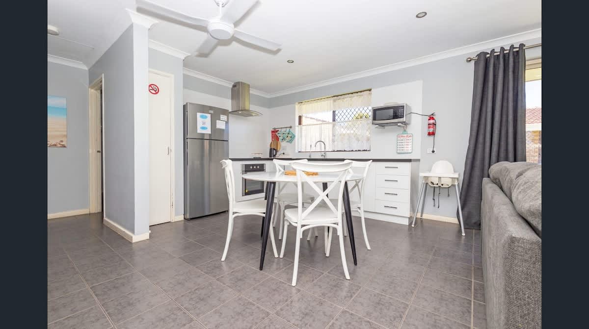 Newly built offering two bedrooms and 1 bathroom this modern holiday chalet is the perfect getaway for your next trip to Jurien Bay. Watch the sun sent over the ocean from the front patio of this centrally located chalet or take a short stroll to the town centre to enjoy Jurien's local shops and restaurants, this property is so well located you can park your car up and walk to the beach and jetty! Modern kitchen and laundry facilities make for an enjoyable stay as does the coastal vibe!