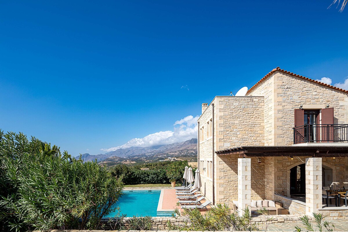 Relax under the bright Mediterranean sun, enjoy the magnificent Cretan landscape as well as a fantastic sea-view from this amazing villa, built at the foothill of mythical mount Ida amidst olive groves and sheep farms, in a quiet secluded village.