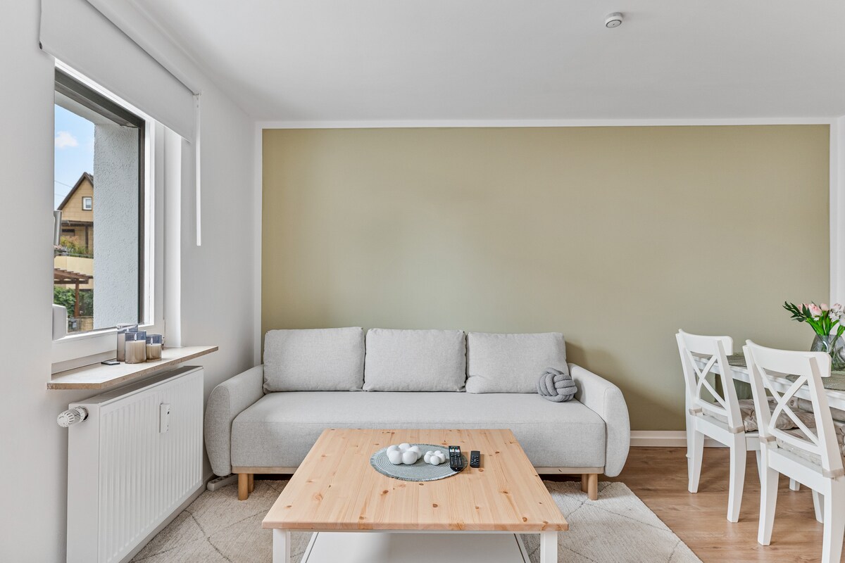 Willkommen in deinem ruhigen Rückzugsort – nur 6 km vom Flughafen & der Messe Stuttgart entfernt! Dich erwartet 1 Schlafzimmer, ein gemütliches Wohnzimmer mit Schlafsofa & Smart-TV, eine vollausgestattete Küche sowie ein modernes Bad. Perfekt zum Arbeiten: separates Büro mit Monitor, Tastatur, Maus & Adapter. WLAN, Terrasse & Parkplatz inklusive. Öffentliche Verkehrsmittel sind schnell erreichbar. Ideal für Business & City-Trips!