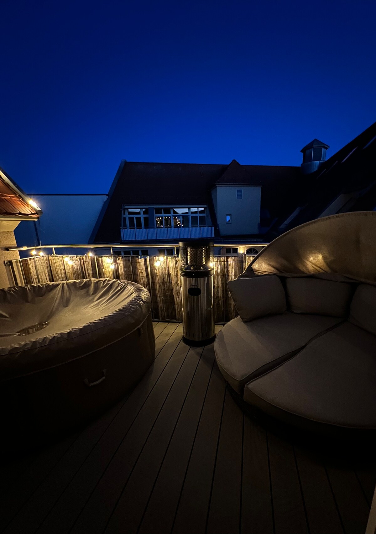 Stylish city loft in a historic printing house with two terraces, a jacuzzi, fireplace & grill. Elegantly furnished, with ambient lighting, event lighting, air conditioning & underfloor heating. Right next to the Grassi Museum in the center of Leipzig. Markets, S-Bahn, pharmacies in 1 min.marketplace in 5 min. Elevator in the house. Perfect for stylish getaways with urban flair & comfort.