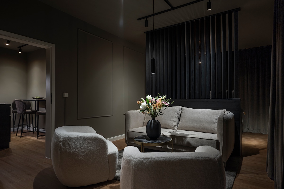 Spanning 22–24 sqm, the M Apartment offers extra space and comfort with a king-size bed, shower, desk. Every room includes a kitchenette, desk, and seating area with armchair and table. Enjoy amenities like a flatscreen TV, air conditioning, soundproof windows, Nespresso machine, Teufel speaker, and free Wi-Fi. Please note that 5% per person per night city tourist tax is not included in the Airbnb price and must be paid directly to the hotel.