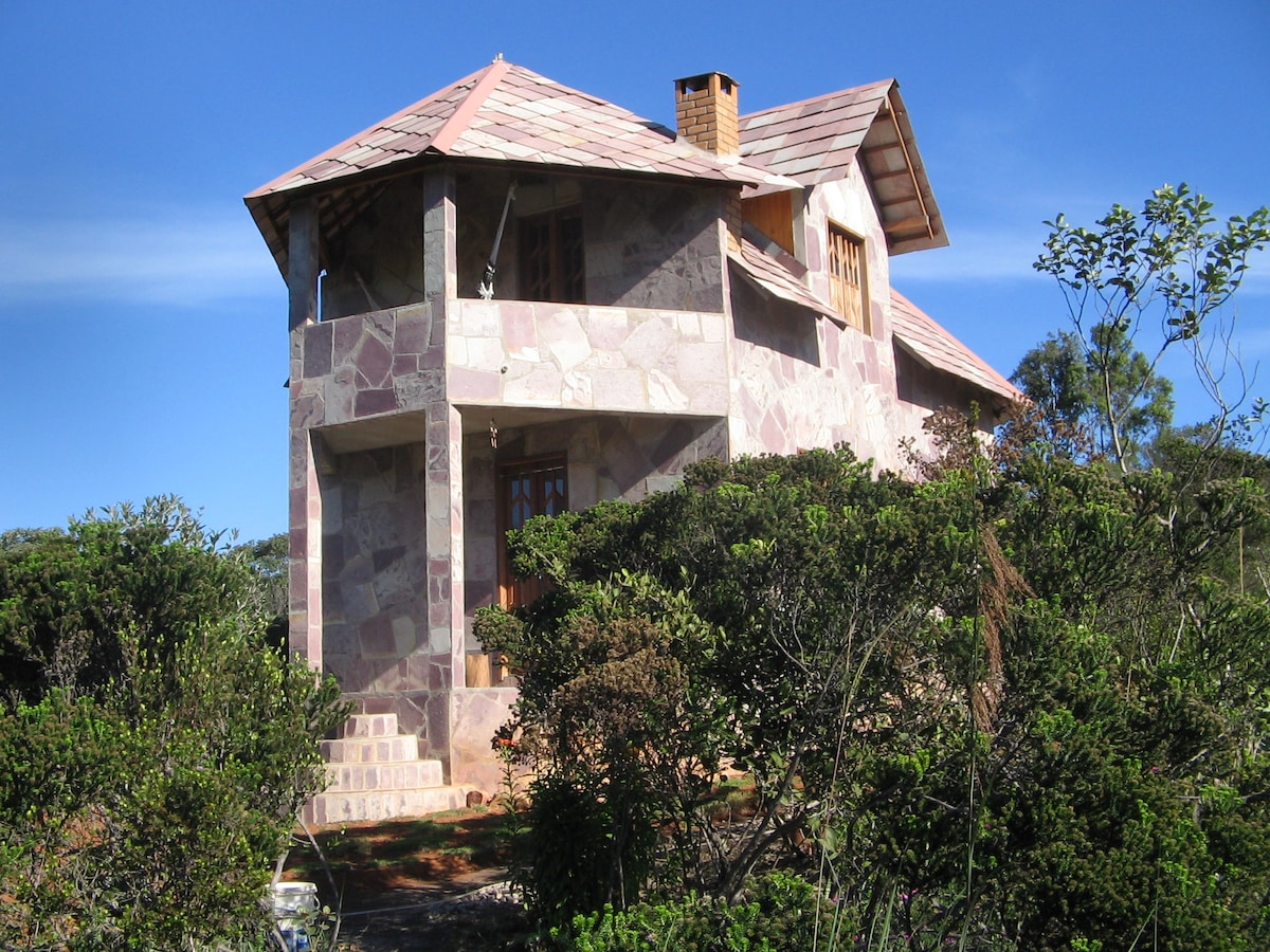 Chalet with the charm of the stones of the region, quiet, spacious place, with balconies and hammock. Superior room with fireplace and mountain view. Outside area with garden and grass. Limit with the Natural Park Riachinho, with waterfalls and trails. The chalet is less than 2 km from the Cachoeira da Fumaça trail.