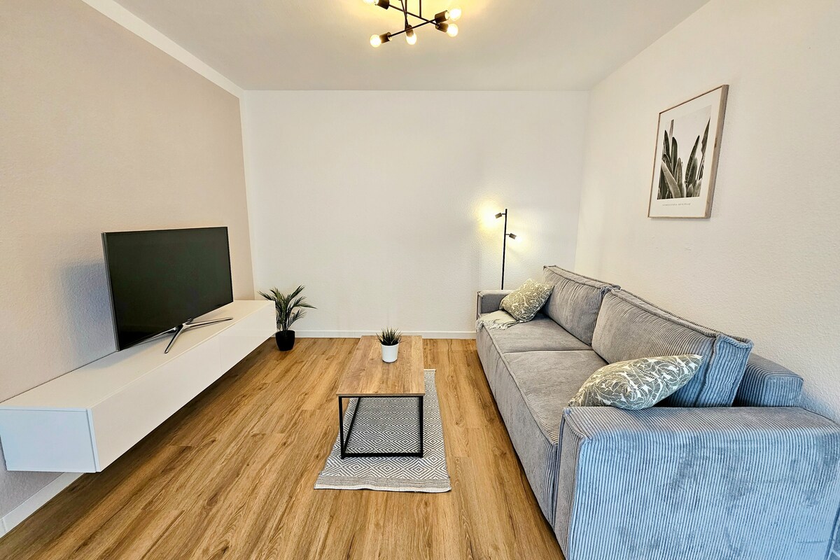 - 1-minute walk to restaurants & shopping - 5 minutes' walk to the train station - fireplace - Bathroom & guest toilet - Large & stylish apartment Welcome to our great old building apartment in Leverkusen-Opladen. This family-friendly accommodation can accommodate up to 6 people with a king size bed, two single beds and a sofa bed. Enjoy the cozy fireplace, board games and children's toys. The location is inspiring due to the fast connections to Cologne and Düsseldorf.