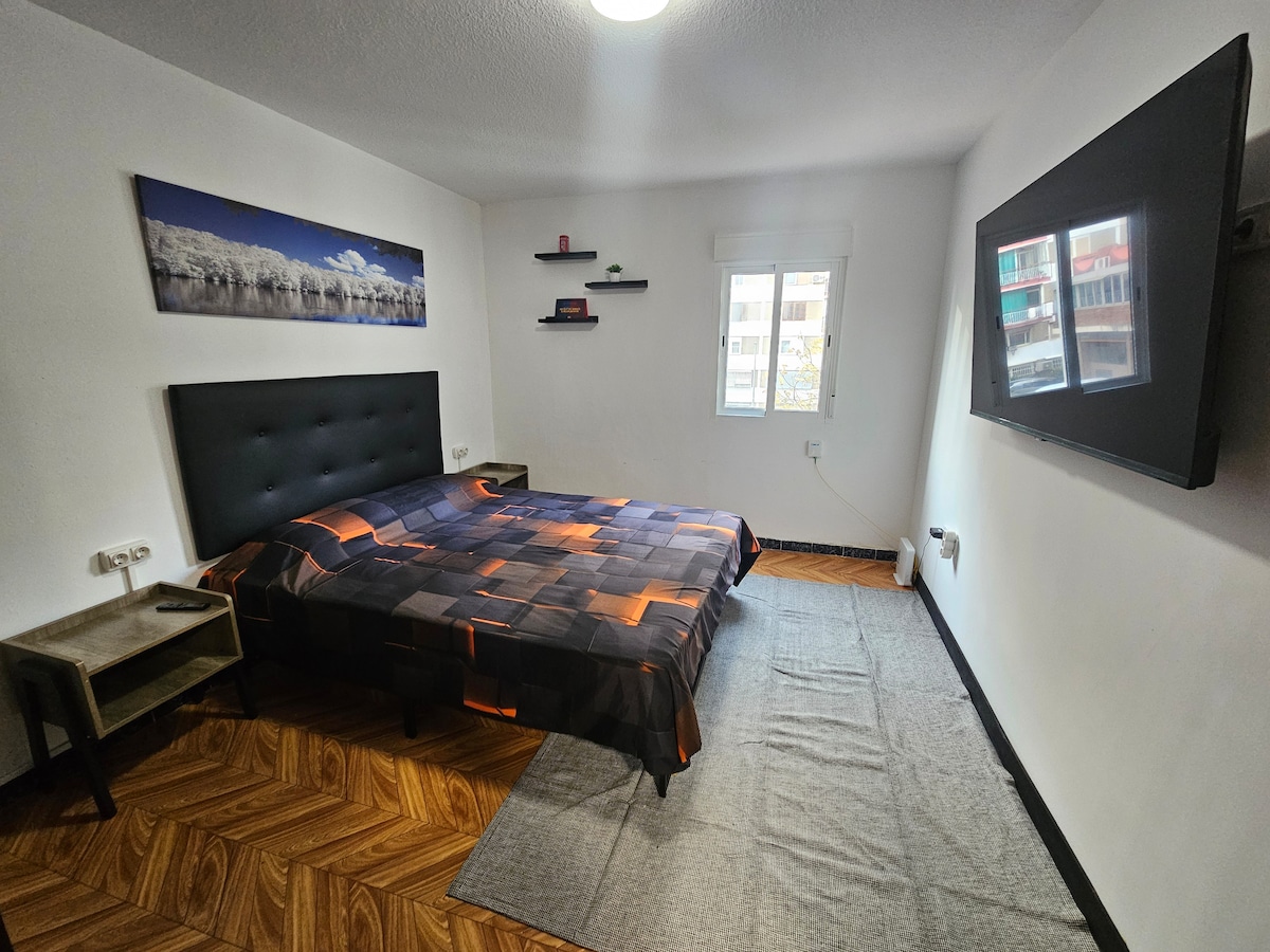 Dos habitaciones dos habitaciones amplias y luminosas, sala de estar acogedora, cocina totalmente equipada, baño amplio y luminoso Wi-Fi con Wi-Fi de alta velocidad ropa de cama y toallas incluidas. Cerca de todos los servicios tiendas supermercados y un parque cercano. Reserva tu estancia hoy mismo