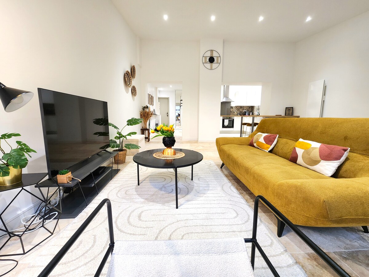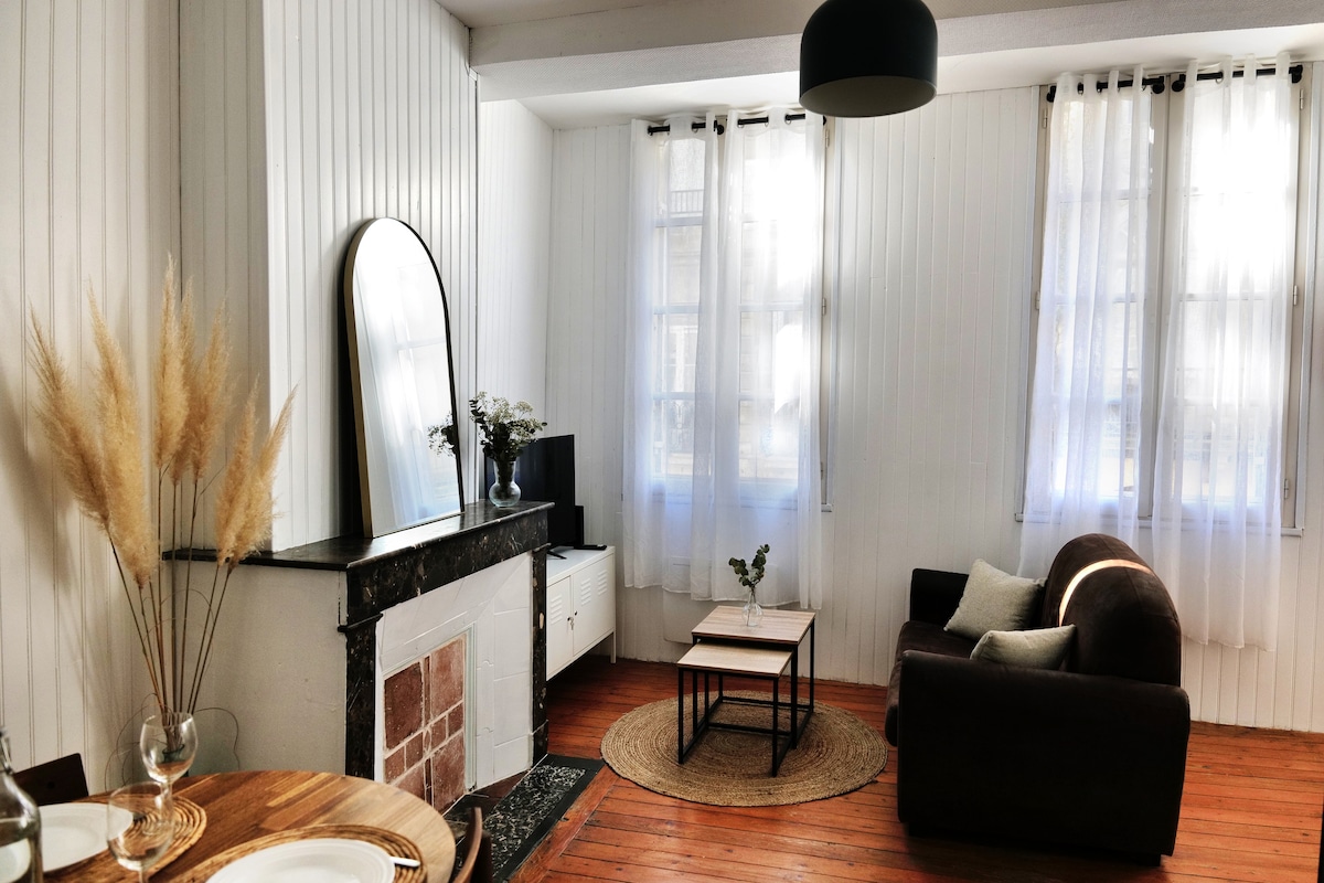 Refurbished mezzanine studio (2023) on the Esplanade de la Bastide at the confluence of the Dordogne and the Isle 📍 Top location: Restaurants nearby, market and shops 1 min away, Train station 10 min walk. 📺 Comfortable: Fiber, Streaming (Netflix/Disney/Prime), Dishwasher. 🚗 Quick access: Saint-Émilion (10 min), Lake (5 min), Bordeaux (20 min).
