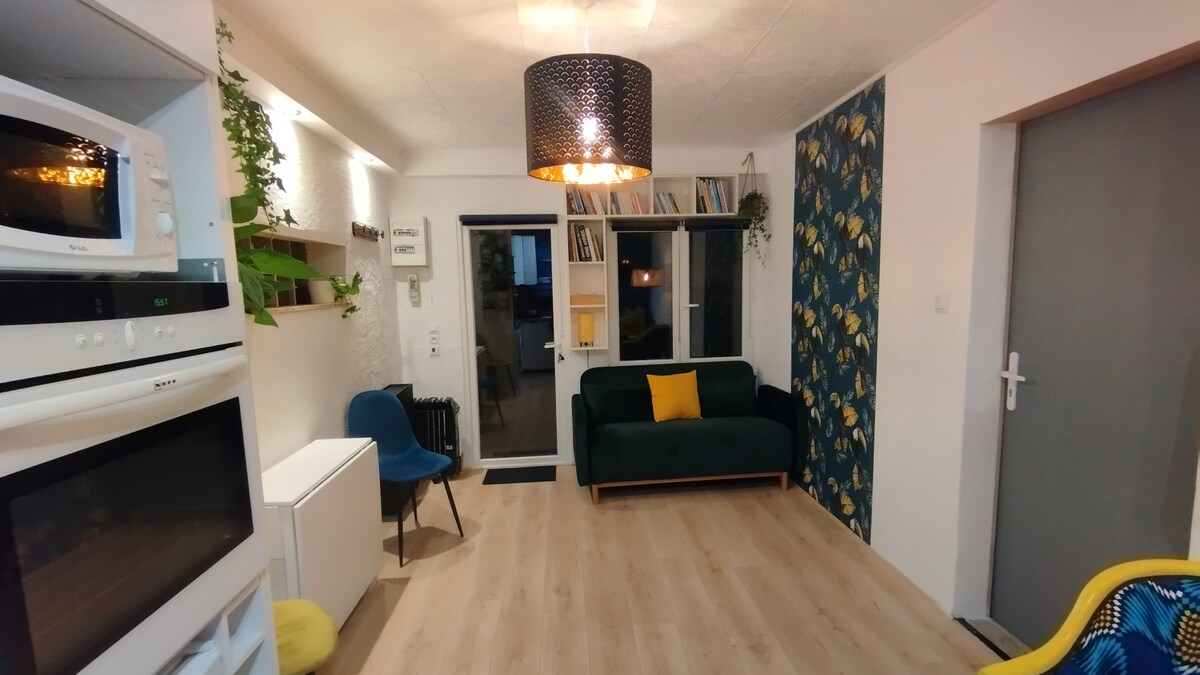 Nice studio in cut stone, on the ground floor with private entrance, refurbished in 2022, located in a quiet cul-de-sac, pedestrian only, in the hyper center, 2 minutes' walk from the market square. Equipped with a TV, fiber wifi, fridge, induction stove, microwave, Nespresso coffee machine, walk-in shower, controlled mechanical ventilation. 8-minute walk to the train station, 20-minute drive to the Bordeaux tram, 10 minutes to St Emilion. 5-minute drive to the "La Calinesie" aquatic center