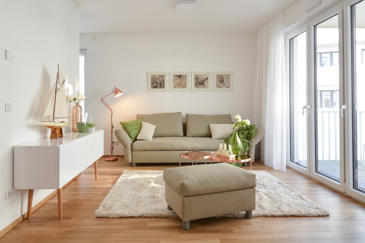 It is a beautiful apartment in the middle of the girls' quarter (Seitenstrasse). Restaurants, supermarkets, etc. are a few minutes' walk away. It doesn't get any more central than this. Local transport, highway and city center are also within easy reach. Free parking is available in front of the door. The apartment is perfectly equipped and nothing is missing. I live here most of the time myself and love my home. All things are of very high quality and should be treated well.