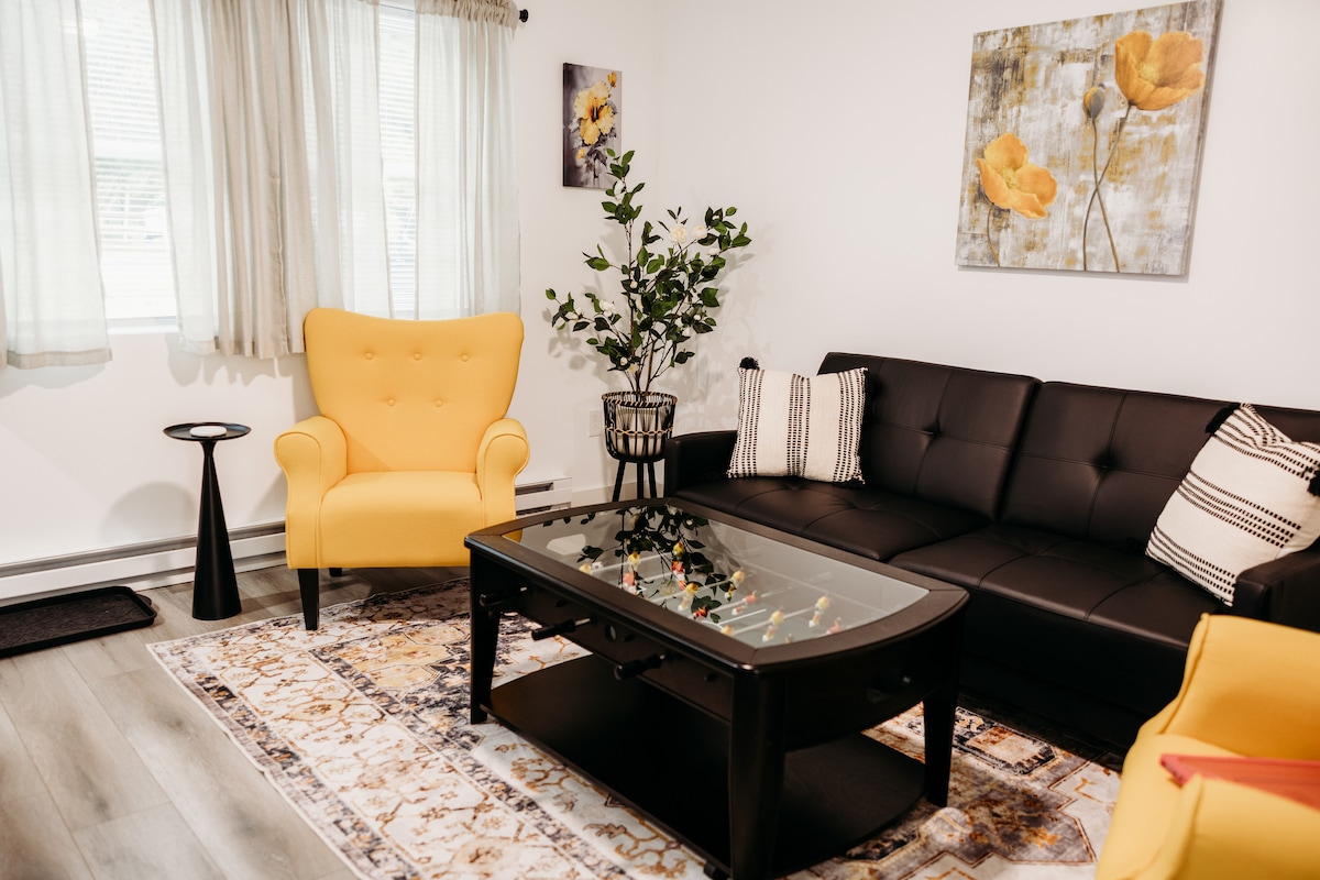 Clean, comfortable, one-bedroom suite located in one of the best areas of Cortland! Only a 5-min walk to Yaman park where you can sit down for a nice picnic, swim in the beach area, fish, or kayak in the Tioughnioga river. Easy commute to Syracuse 40 mins or Ithaca. Located 40mins to 8 golf courses, and 4 ski resorts. Walking distance to grocery stores, laundromat, coffee shop, restaurants, a fitness center, bus route, and city owned rental bikes all located within just a few minutes.