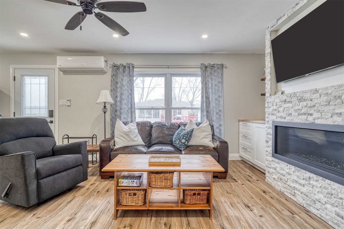 Relax in our tranquil Lake Ontario retreat, nestled in Stoney Creek between Toronto and Niagara Falls. Our cottage boasts lake views year-round, a backyard oasis with a fire pit, outdoor furniture, and yard games. Enjoy recent renovations including billiards, ping pong, Smart TV, and board games. Sleeps six with two bedrooms and a sofa bed, fully-equipped kitchen, modern bathroom, laundry, free Wi-Fi, and parking.