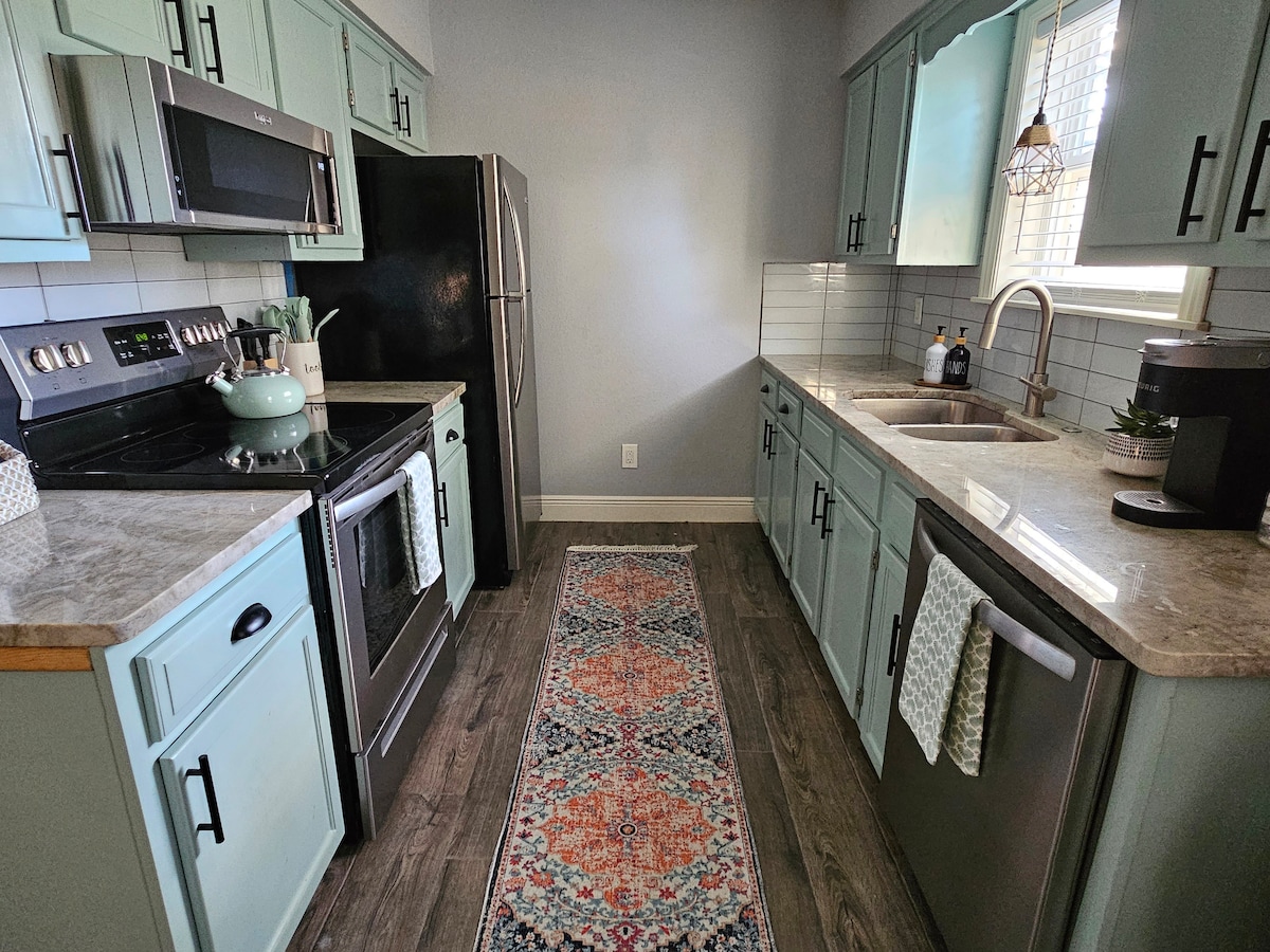 Keep it simple at this peaceful and centrally-located guesthouse. 10 minutes from Downtown Bentonville, with easy access to Hwy 49, Sam’s Club, NWACC and all that NWA has to offer! This one bedroom includes a queen bed, with pack-n-play, a queen futon bed and small futon in the living room which allows 4 adults and 1 child to sleep comfortably. The partial kitchen has an electric burner, microwave, coffee pot, and a small combination oven/air fryer/toaster. Check us out! We think you’ll love it!