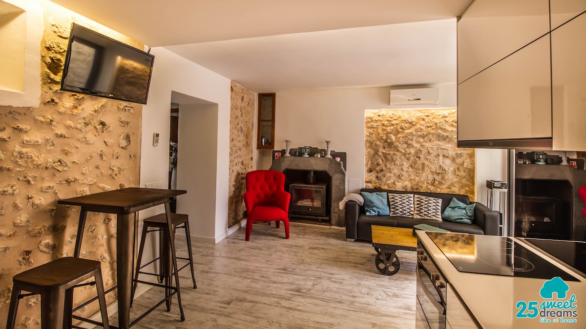 Can Merris is a town house built in 1895 that retains its character and personality. Newly renovated, it mixes tradition with modernity and comfort. Ideal for winter and summer, it has a fireplace, heating, and air conditioning. With a charming patio with indirect lighting and a dimmable garland. Magical pool to cool off on sunny days. The location is perfect for cyclists, wine lovers and just 30 minutes from Palma and the best beaches.