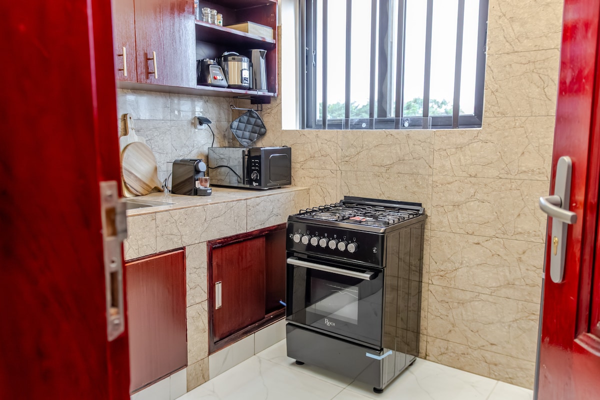 Découvrez ce lumineux appartement meublé d'une chambre à Baguida, Lomé. Prenez votre café sur la terrasse, flùnez sur les plages voisines, cuisinez dans la cuisine équipée, restez connecté grùce au Wi-Fi et détendez-vous grùce à la climatisation, Netflix, le linge de maison frais et le parking gratuit. Idéal pour les courts et longs séjours. Remarque : La consommation d'électricité est à la charge du client.
