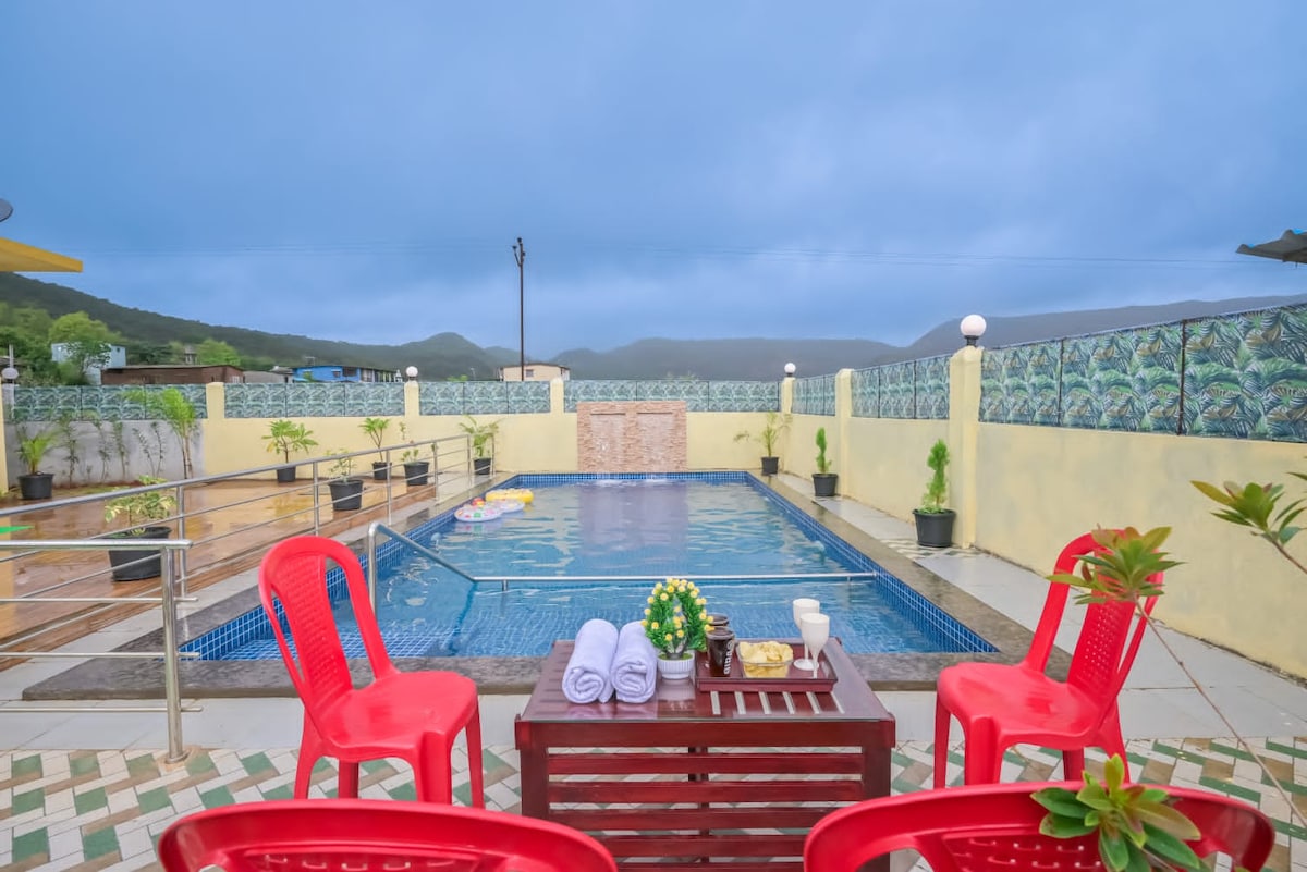 This fully-serviced stunning 3 BHK Villa in Lonavala features a private swimming pool, a spacious terrace, and breathtaking mountain views! Located just 5 minutes from the market (famous Coopers Fudge & Chikkis shop), it offers the perfect blend of privacy and convenience. Enjoy luxurious interiors, a serene atmosphere, and easy access to local attractions. Ideal for a family getaway or group retreat, this villa amidst nature's tranquility promises a special stay in the heart of Lonavala.