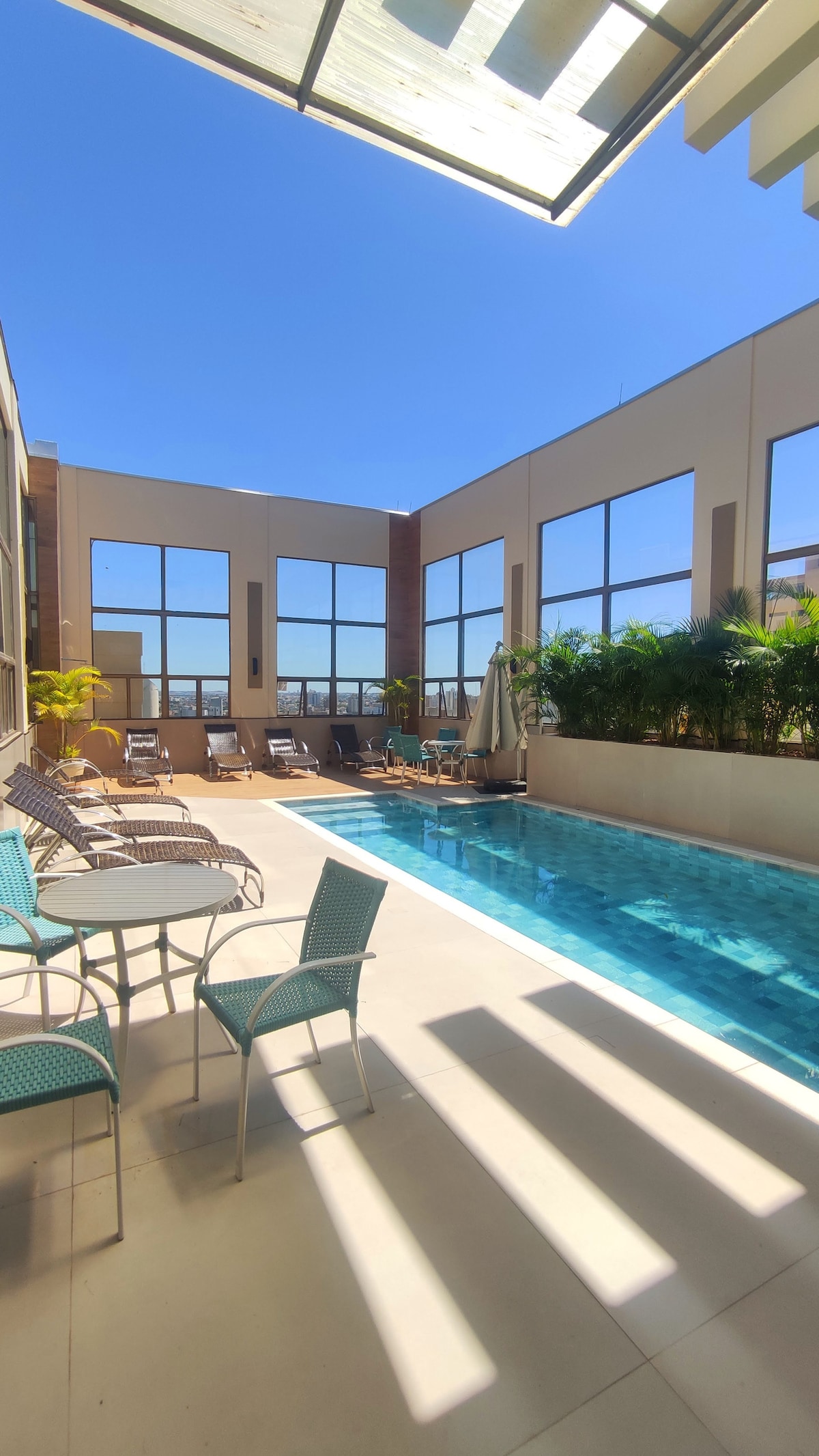Brand new, modern, high-end apartment with premium finish and elegant design, offering absolute comfort in every detail. 📍Jardim Pinheiros, easy access to Gleba, downtown, UEL and Shopping Catuaí • 13th floor • 2 bedrooms (1 ensuite) with air conditioning and complete trousseau • Living/dining room with 55" Smart TV and air conditioning • Fully equipped kitchen + washer and dryer • Pool • Playground • Charcoal barbecue in the apartment • Demarcated and enclosed garage • 24-hour doorman and self check-in