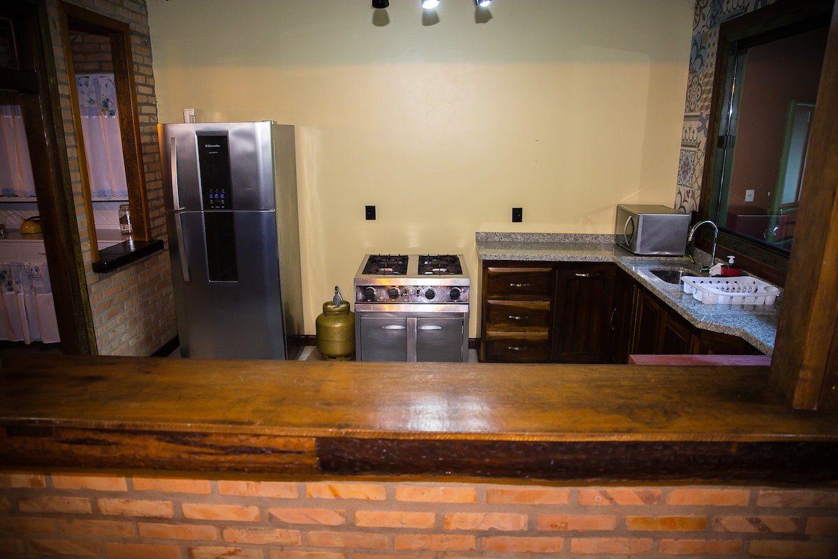 Entire house - Beautiful country house located in Apiúna -SC. Large indoor space with 1 en-suite and 2 bedrooms, social bathroom, kitchen and service area. Party area with barbecue, wood-burning stove, swimming pool and outdoor bathroom. Large garden with orchard (pick your fruit right from the tree), fish pond (available for fishing and local consumption) and lots of fresh air. Enjoy this delightful space with your family and/or friends, you won't regret it. We're waiting for you!