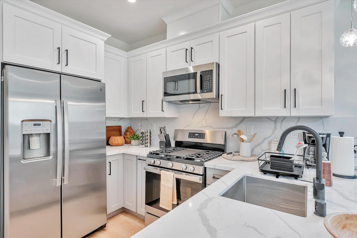 Newly renovated ultra clean designer home in duplex minutes from Apple campus. Highly walkable, the entire home has been recently rebuilt from the studs with new top of the line designer furnishings, kitchen essentials, appliances, and toiletries. Disney+, Hulu, Cable TV, and Nespresso coffee included during stay with ultra-fast internet up to 500mbps. 5 min to Whole Foods 12 min to Apple Park 20 min to Stanford