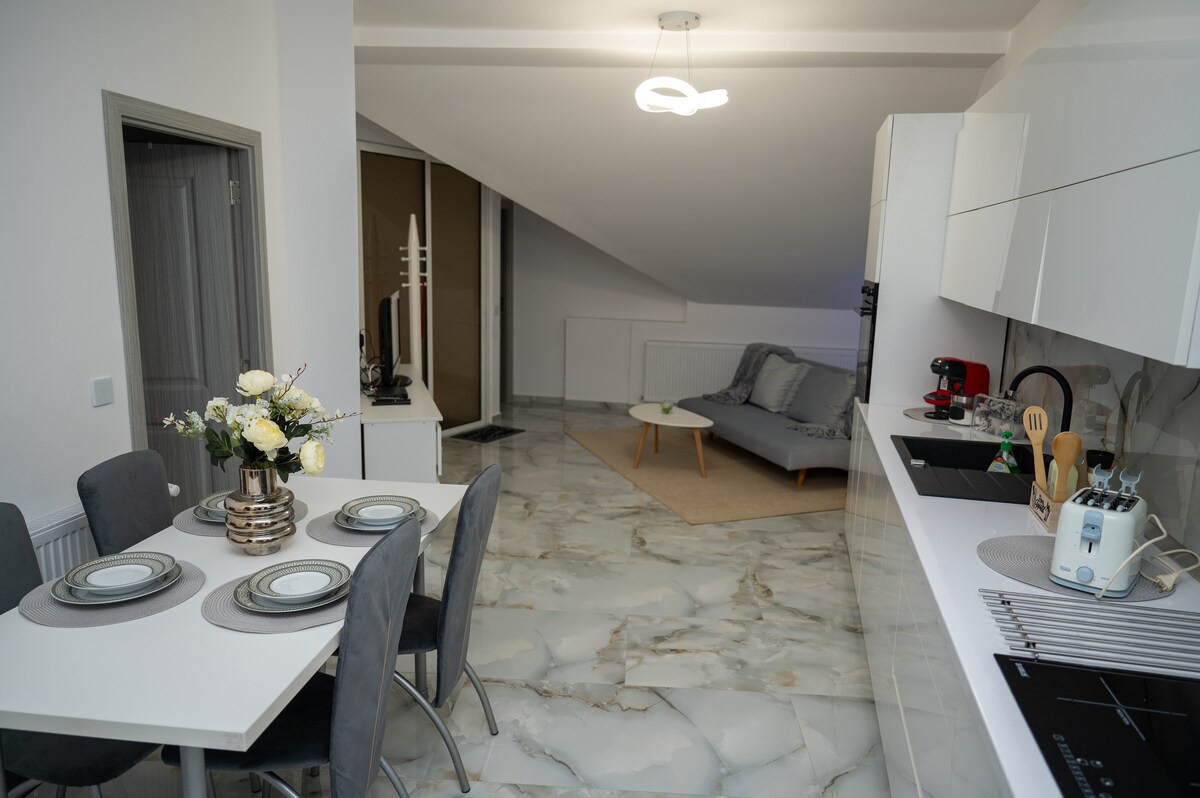 An hospitable modern and cozy apartment located next to Victoriei Square (Piața Operei) in the old town of Timișoara. Penthouse style, top floor, open-plan, with an awesome balcony, large windows and plenty of natural light in the whole apartment. Central, yet quiet and cozy. Ammenities carefully designed for a comfortable weekly stay. PS: If your dates are unavailable check out my other apartment - Opera Lavendel - same location, same ammenities.