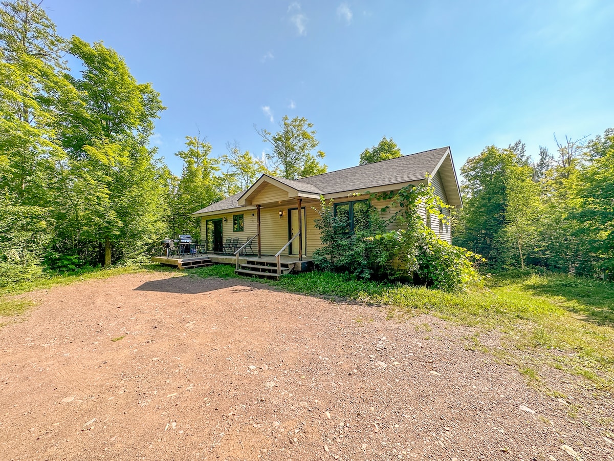 A mature forest and a beautiful pond are what you'll see when you arrive at this cozy, secluded, full log cabin. The cabin was recently completely renovated (Mar/April 2025)from log to log and is stocked with everything you'll need for your stay. It has all new appliances, furniture, fixtures, bathroom, cabinetry. 💚 It is the perfect homebase to relax after a long day of hiking Frog Bay, Houghton Falls, Lost Creek Falls, Meyers Beach, or shopping in nearby Bayfield, Washburn, or Cornucopia.
