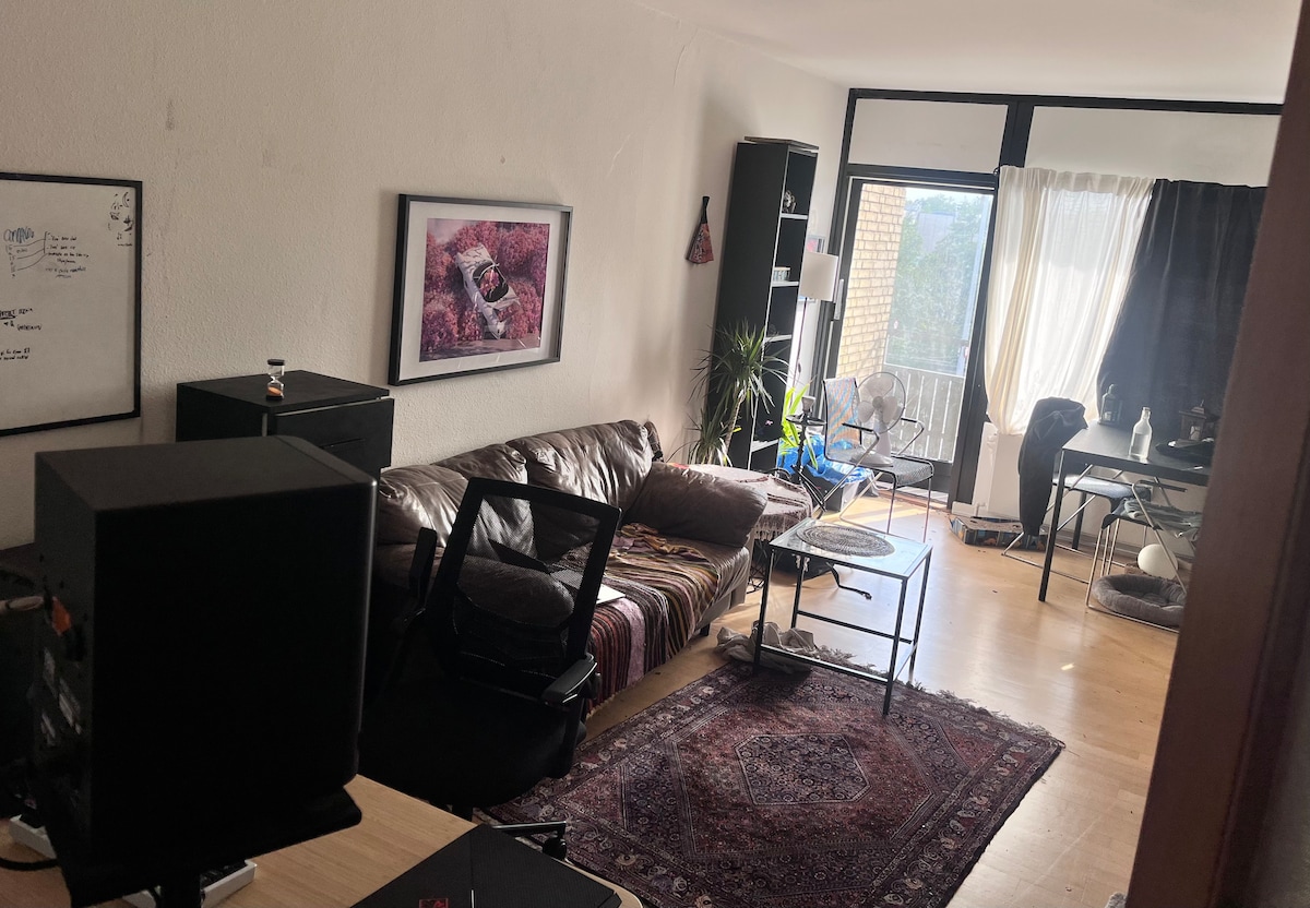 Small, but cozy, apartment with living room/kitchen, shower and toilet and bedroom with double bed (140x200), wifi and chromecast. There is nothing fancy pancy on this occasion and you won't find the newest, most modern fixtures here. In return, you will live in a relaxed home where there is room for both creativity and work. Hosted not for more than 3 months at a time.