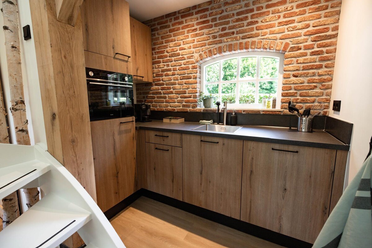 This characteristic haystack has been professionally converted into a beautiful, luxurious vacation home with a private hot tub and private parking. The spacious house has 2 floors and has all the comforts. Upstairs you will find 1 bedroom with a bathroom and a separate toilet. On the ground floor, there is a beautiful open kitchen, a cozy living room with a wood-burning stove, toilet and sofa bed. The house also has a very spacious garden (1000 m2) and a covered terrace.