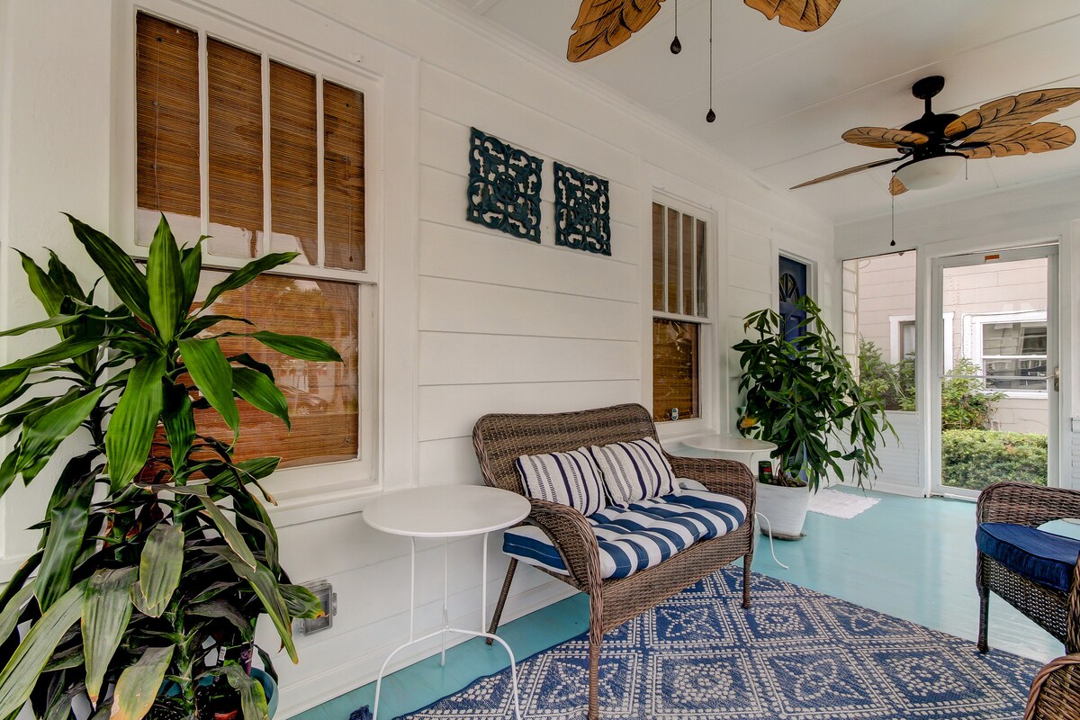 This is our 1921 cottage with old Florida charm -GREAT LOCATION! A block from the Bay Beach, parks, and four blocks from downtown St. Petersburg & the Vinoy. A short walk to great restaurants, cafés, bars, galleries, & museums. This clean, charming cottage includes a large enclosed porch with large wicker chairs to relax and enjoy your morning coffee or evening cocktail. Ceiling fans, full kitchen, many windows for light & charm. We think you will love it!