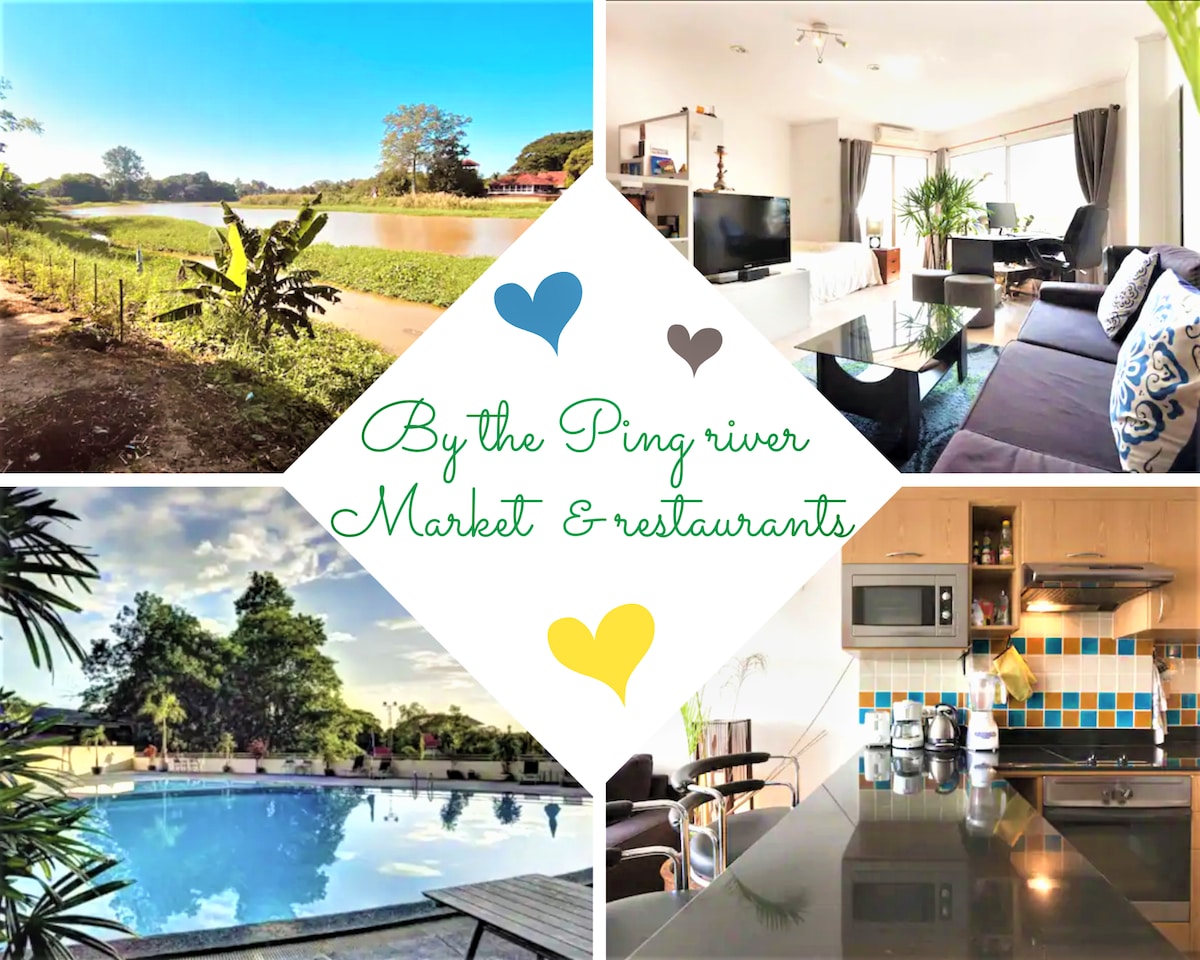 This unique home is situated in lush, green privacy on the Ping river, minutes to Thapae Gate, shopping malls and the Nimmanhaemin area. There are two bedrooms with en suite bathrooms, covered outdoor decks & a pool. It's a perfect get away for couples, friends and family. All bedrooms have air conditioning, WiFi and cable TV. We offer a free pick up service from CNX airport, bus/train stations and 5 km from central Chiangmai Additionally: astrology readings are available on request.