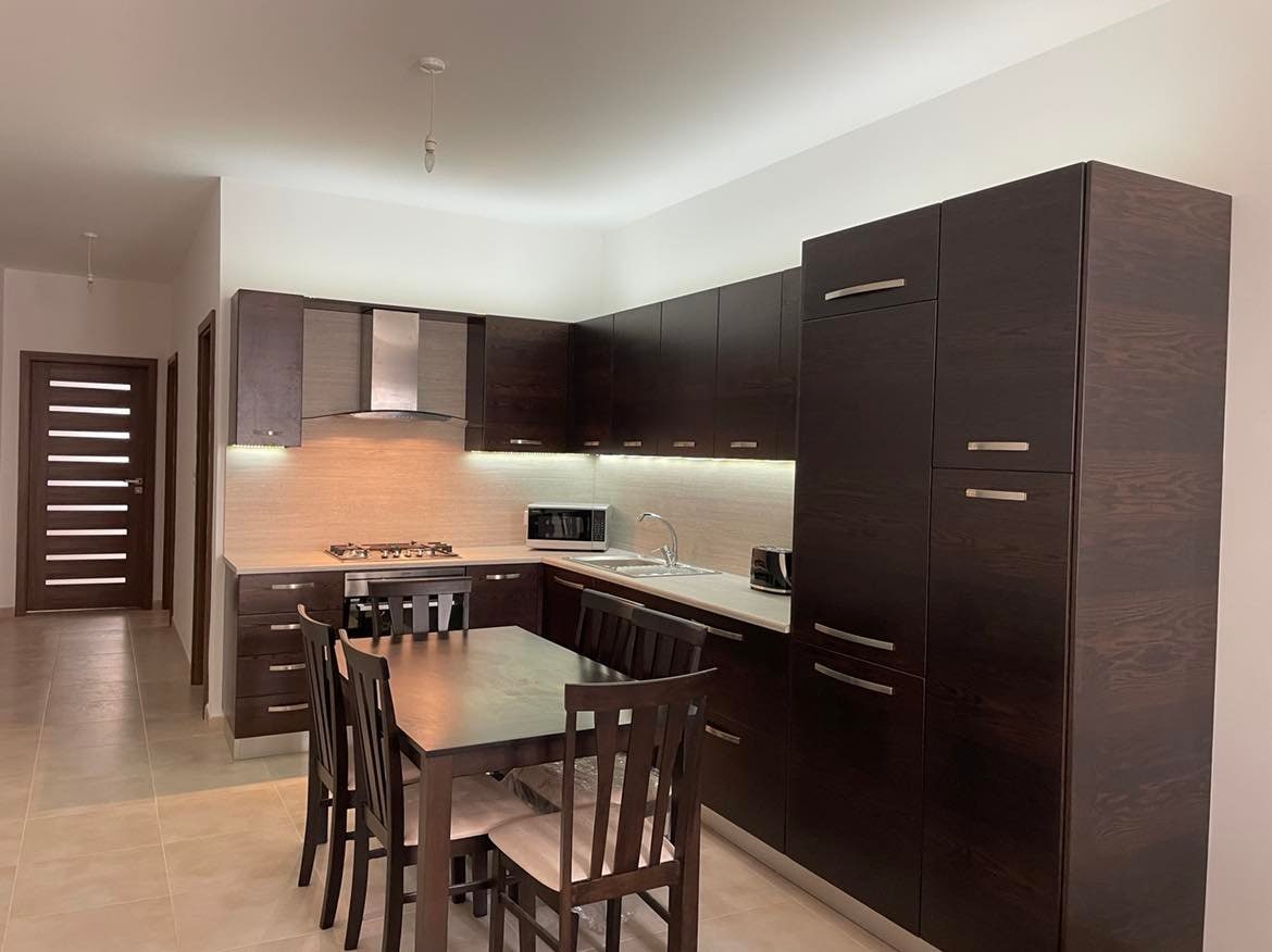 Enjoy your stay in this new and modern 2 bedroom apartment equipped with all needs, in a quiet but very central location. This bright and fully furnished apartment is served with lift and is fully air conditioned. Once inside one can find an open plan Kitchen/Living/Dining complemented by a good sized balcony with very nice side sea views of St Paul’s Islands and the surroundings. Both main bedroom and spare bedroom lead to a back terrace with distant side sea views.