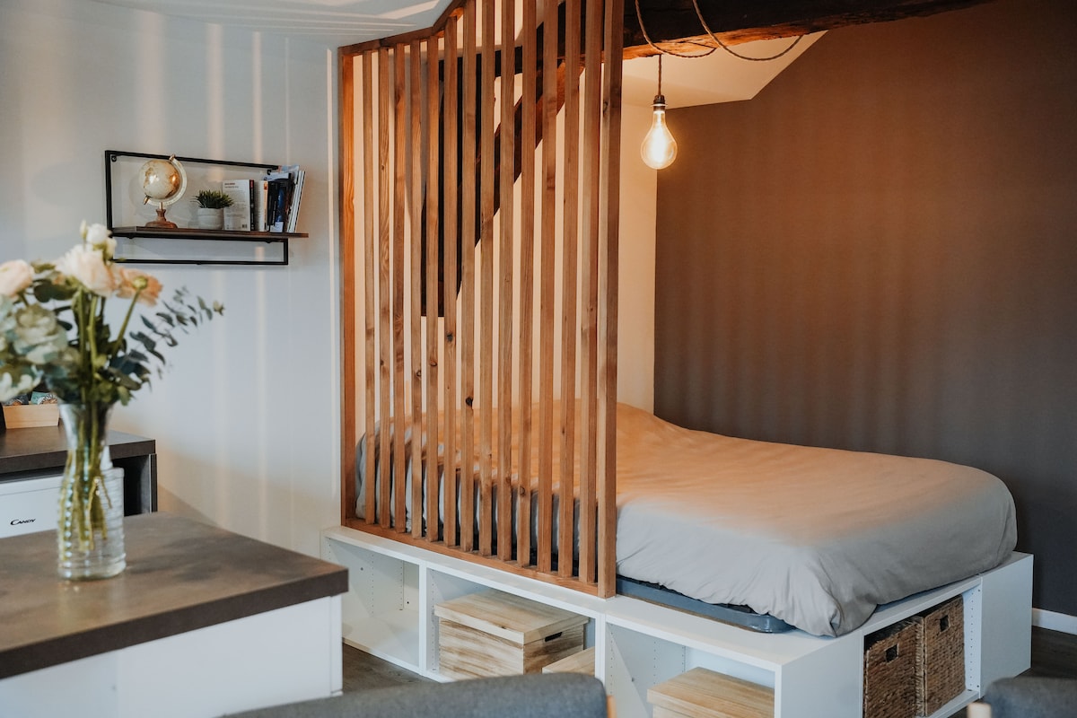 Large renovated equipped studio in the Historic Heart Available in the accommodation: - Bed linen and towels - Welcome products: tea, coffee, madeleines, shower gel - Fiber WiFi - Smart TV - Washing machine/dryer - Dishwasher - Microwave grill - Induction cooktop - Senseo coffee machine -Water boiler - Fridge - Mini dressing room Optional: - Breakfast at Chez Rosette restaurant €8/pers. - Late checkout 1 p.m. / €10 supplement Self check-in after 4pm and checkout before 11am