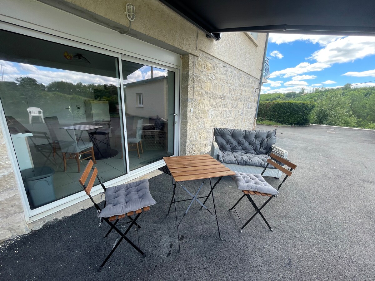 Welcome Ohbongite, At the crossroads of several tourist sites (Sarlat, Lascaux, etc.), we welcome you to a comfortable apartment of 65 m2 for a maximum of 5 people (baby equipment possible, stroller, baby bed, high chair). Bed linen and bath towels included. The area is dotted with beautiful hiking in the countryside. Come and stroll through the middle of the ancient city of Terrasson-Lavilledieu where you will find small shops with these artisans.