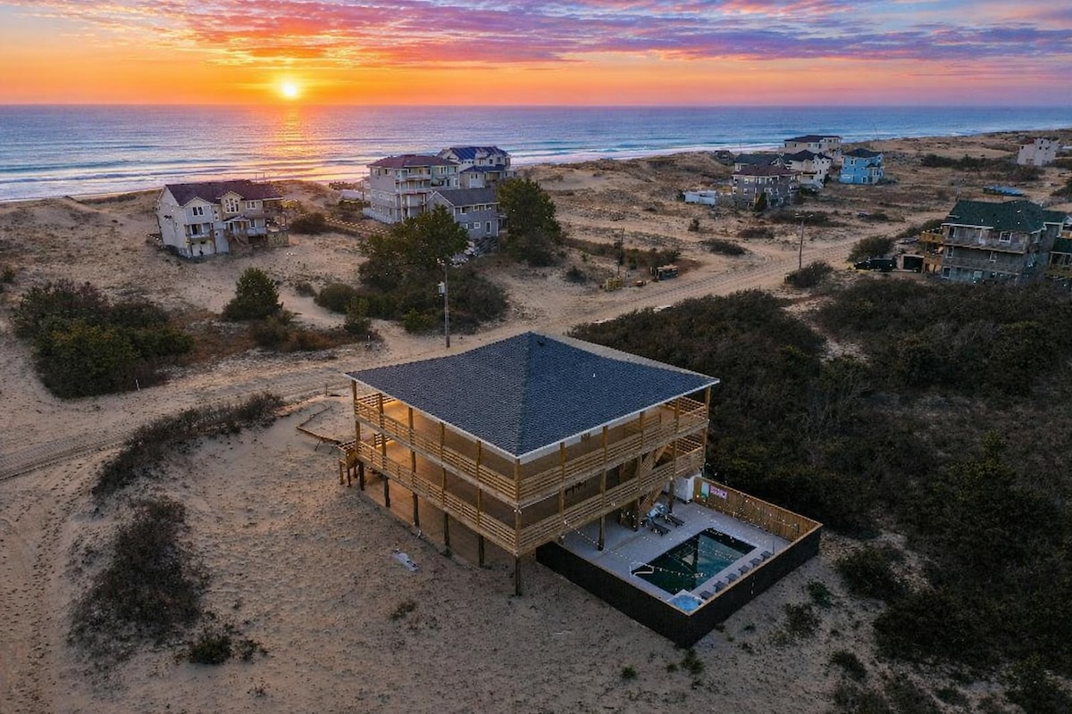 New in fall of 2022, “Always About The Beach” features attractive furnishings, a well equipped kitchen, two king bedrooms, two full bathrooms and a queen pull-out sleeper sofa. Outdoor features include: BBQ grill, outdoor shower and hose. Located in the heart of Corolla where it’s just a 5 min walk to the to the beautiful Currituck sound on one side and to the ocean on the other, making it easy to catch the many beautiful sunrises and sunsets.