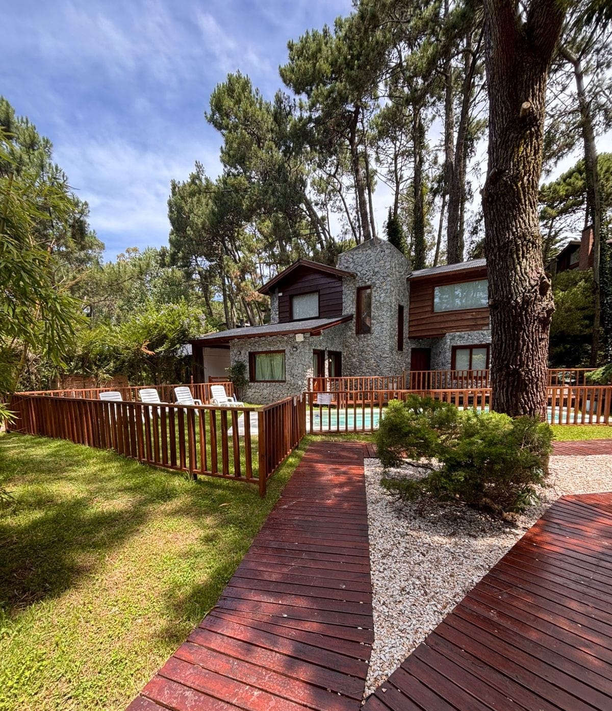 Sea and forest, very sunny, bright, in the heart of Mar de las Pampas. A cul-de-sac with no exit, with quiet, family houses and very close to everything. Super-equipped with everything you need to spend a few days relaxing, to fully enjoy the sea, the forest, the wood-burning fireplace, and shopping and gastronomic walks. Upper floor: living room, dining room, kitchen, separate laundry room, and balcony terrace with a covered grill and staircase to the park. Ground floor: 4 bedrooms, 2 full bathrooms.