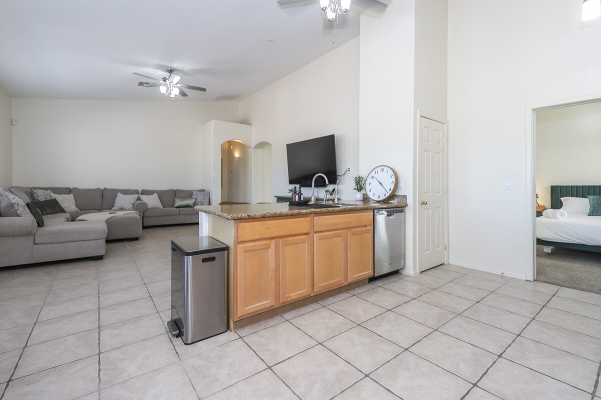 Whether you're seeking a peaceful getaway or a vacation filled with exploration, this serene vacation home is ready for you! The home is lovingly maintained with comfy beds & sofas, soft linens, fast Wi-Fi service, dedicated work space, Smart TVs, a well-appointed kitchen & ample space for guests. The beautiful backyard has shaded sitting areas, flowering bushes & citrus trees. Located in a quiet neighborhood amongst mountain views, trails, 81-holes of golf, shopping, dining & entertainment.