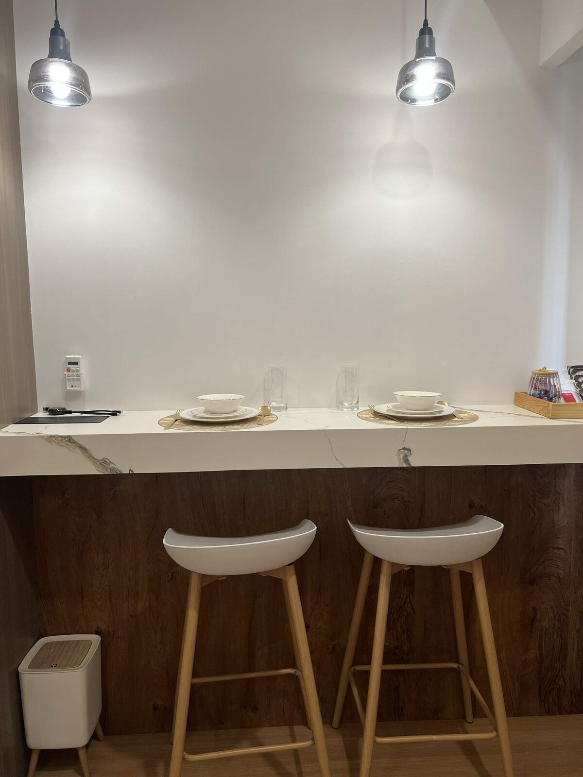 New furnishings, WIFI, 55 Inch Smart TV, Fully equipped kitchen, washing machine, one bedroom with comfortable bed, dresser and wardrobe, inbuilt cooktop with rangehood, large refrigerator, hot and cold shower. Newly renovated with high quality fixtures and furnishings. Parking space included. Sofa bed and tall dinning table with 2 stools. AC in the bedroom and the living area, simply beautiful.