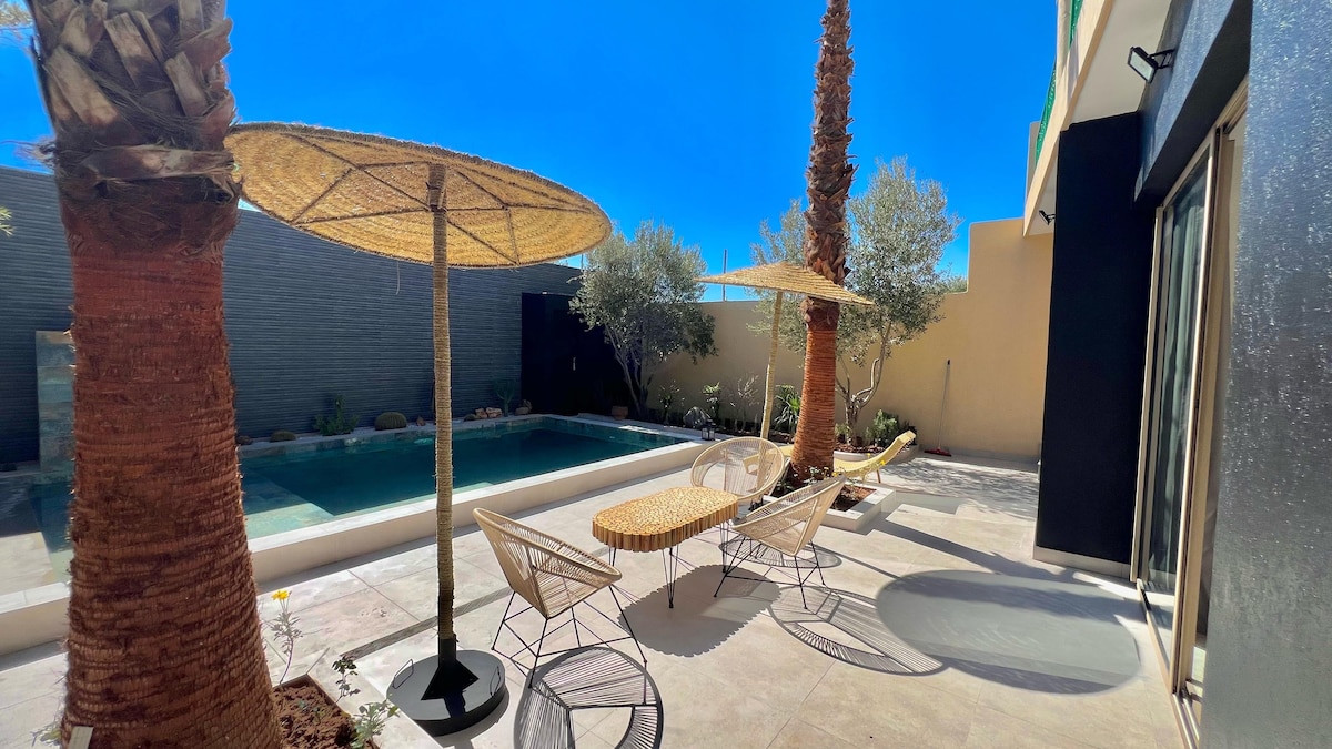 ✨ Private villa just 15 minutes from Marrakech, perfect for families and groups. Enjoy a completely private pool, Moroccan hammam, gym, high-speed Wi-Fi, and optional breakfast. The quiet, unobstructed garden, the warm welcome and 24-hour security guarantee a peaceful, comfortable and authentic stay. An ideal experience to relax while remaining close to Marrakech.