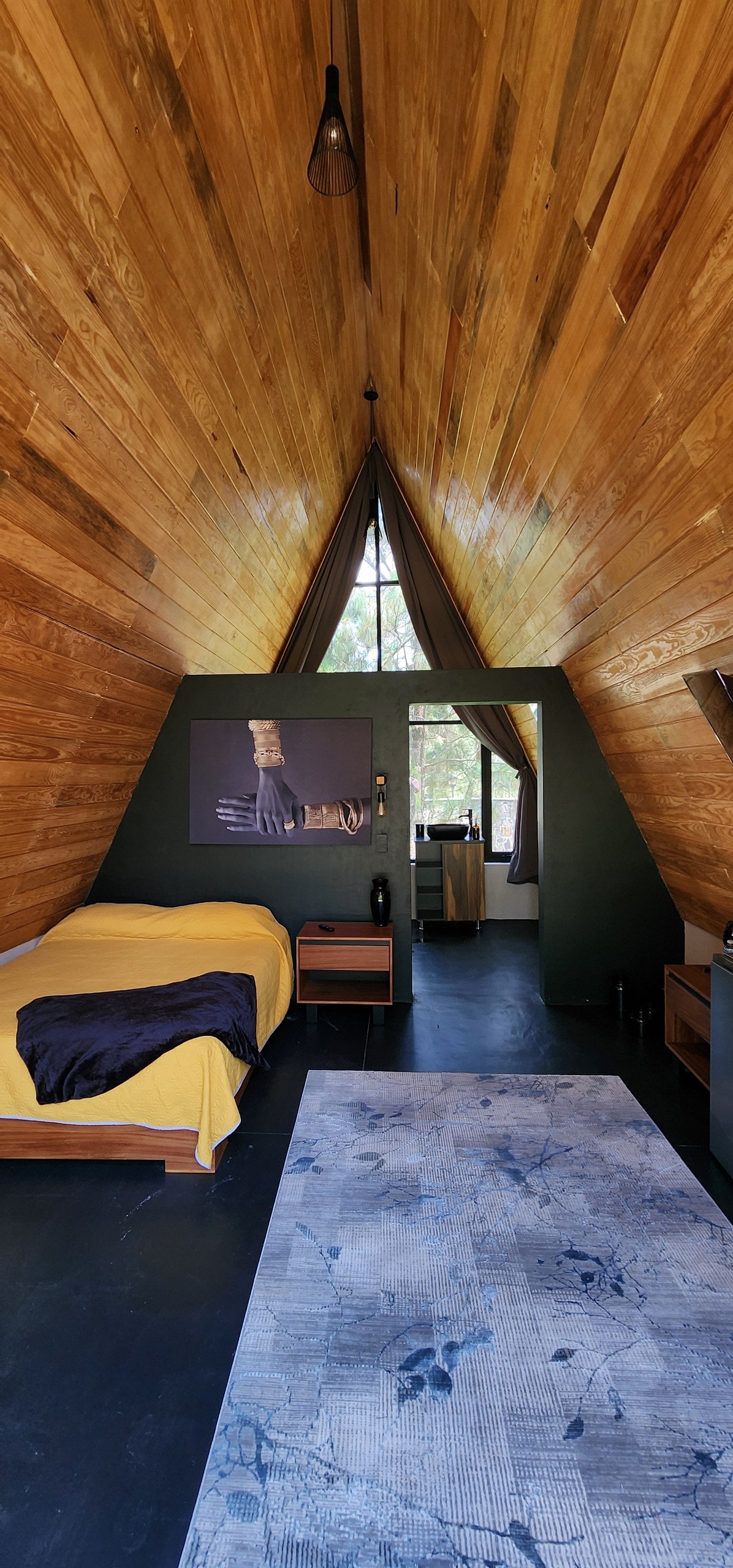 Alójate en esta hermosa cabaña ubicada en uno de los fraccionamientos más exclusivos de Mazamitla "Paso del ciervo". Un espacio acogedor creado para relajarte. Este lindo alojamiento está a tan solo 12 min del pueblo de Mazamitla y cuenta con una habitación en planta baja con una vista increible, la cual, solo se habilita dependiendo el número de huéspedes en la reserva. IMPORTANTE‼️‼️‼️ Si asistes con niños avisa al anfitrión ya que no es recomendable para menores, ni grupos de 3 personas.