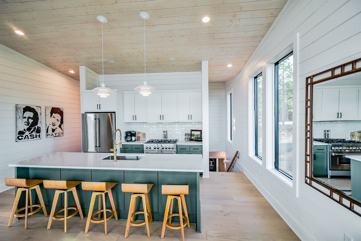 Modern Luxury Cabin | 2 King Suites • EV Charger • Pet-Friendly Discover The Modern—a stunning, design-forward cabin on 3.5 private acres in Broken Bow. Featuring soaring 18-ft ceilings, large windows, an all-white chef’s kitchen, wood stove, and 2 luxe king suites (one w/ soaker tub). Enjoy forest views, cozy up by the fire, and charge your EV onsite. Dog-friendly too! Book your unforgettable getaway today.