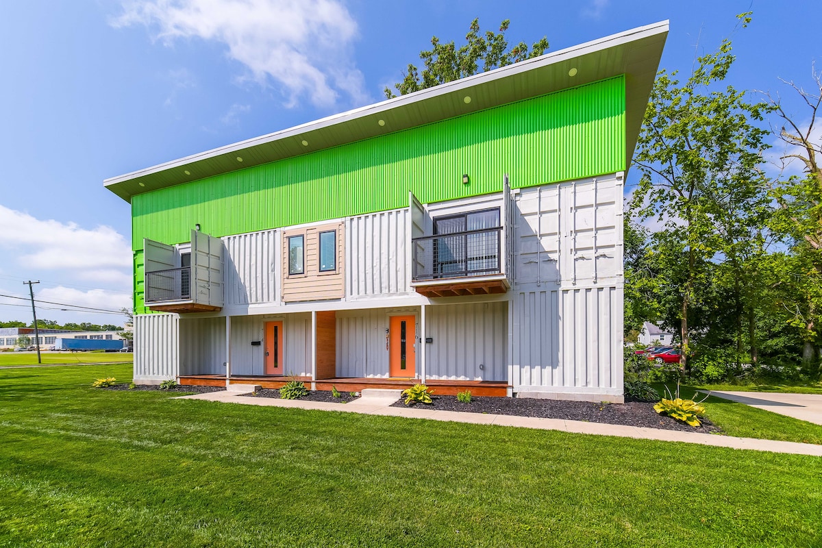 Unique container home duplex hosted by SUPERHOST. Constructed in 2019, it features 11 shipping container boxes - nine 8x20 foot boxes and 2 8x40 foot boxes. We believe it may be the first shipping container double east of the Mississippi River and perhaps unique to the U.S. at the time. The container home is near historic downtown, Marysville Hospital, Muirfield, Mad River SKI, Nestle's, Scotts and Honda of America locations. Enjoy a full kitchen, 2 queen beds & en suite baths and #WFH desk.
