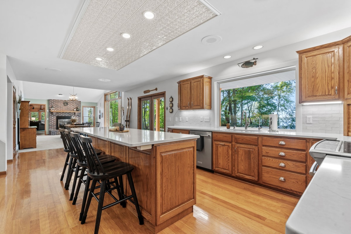 This great two-story features 80 feet of shoreline, Bi-level deck w/ great lake views, main floor bedroom, ample natural light throughout! The upper level master bedroom has walk-out access to the deck with beautiful lake views! This is a perfect place for a multi-family outing. Nestled in a quiet neighborhood suited for a nightly campfire where an expected quiet time starts at 10pm. We are also 10 miles from Starlite drive-in theatre! Great for a family night out!