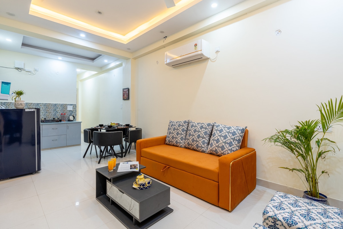 Stylish Comfort in the Heart of Rajnagar Extension A cozy, modern stay in the center of Rajnagar Extension. Enjoy easy access to shops, cafes, salons, groceries, and local food stalls — all just steps away. The fully furnished flat offers elegant decor, soft lights, and comfy furniture. Ideal for work trips, family visits, or city breaks. Feel right at home in a safe, walkable, and vibrant area with everything you need nearby.