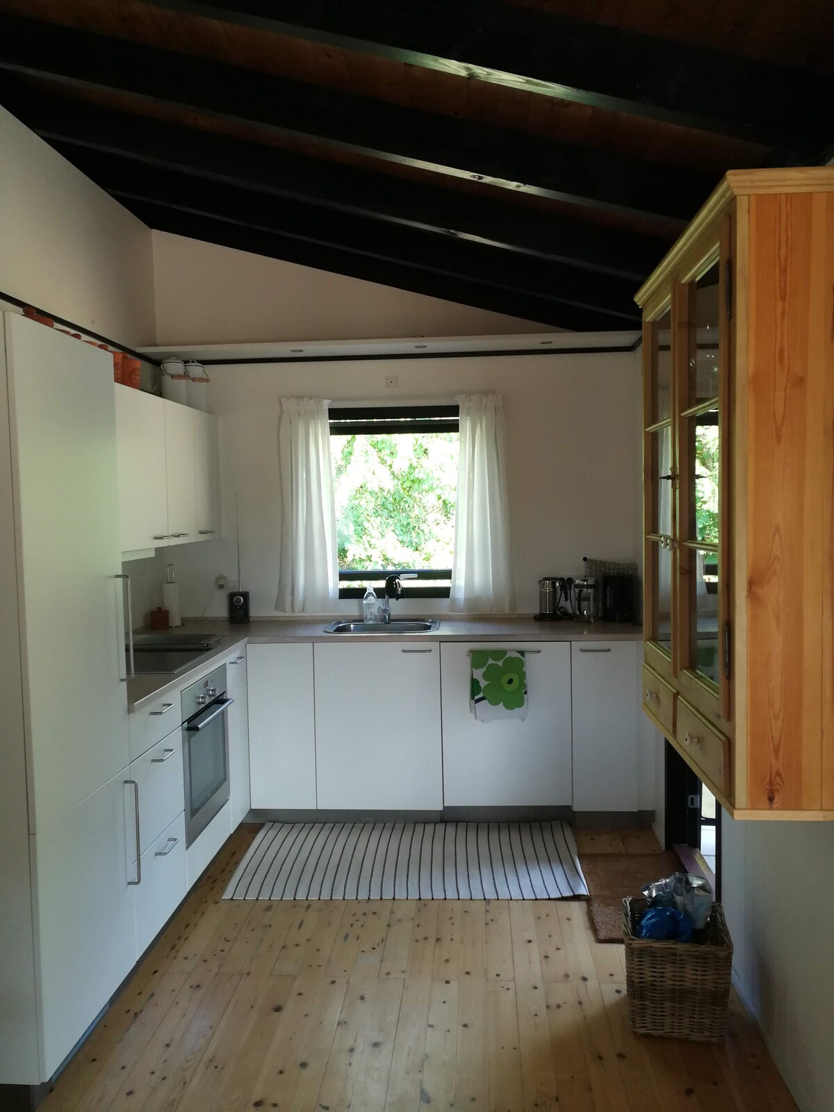 Beautiful kitchen/living room with fantastic light, both due to skylights and large windows facing the terrace and garden. The kitchen has a cooking island, wood-burning stove and is in open connection with the dining area, which in turn is partially open to the living room. 2 rooms with large loft, large bathroom with both spa and shower as well as laundry room with washing facilities. There is 1000 m to the nearest beach and 2 km to the nearest shopping.