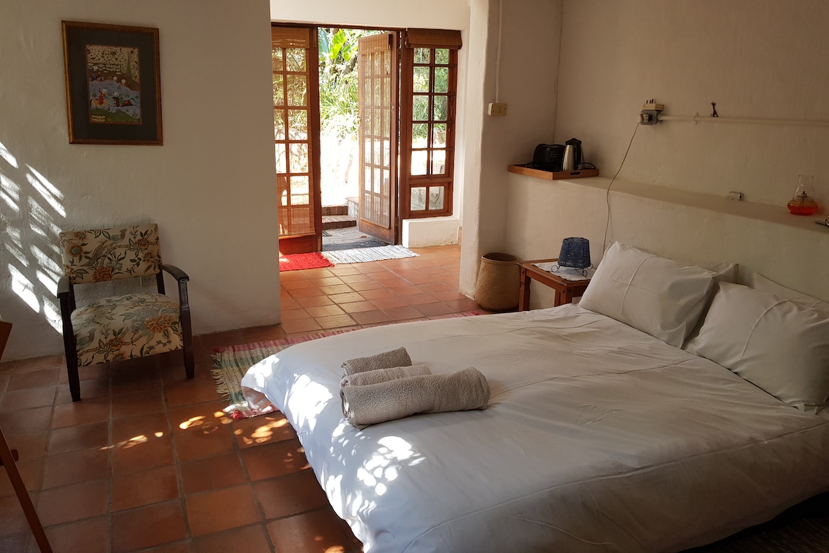 A beautiful thatched property suited to 3+ business travelers, small groups or families, consisting of 2 x 1 bedroom garden cottages (Hoepoe & Kingfisher), the linked Studio & 1 bedroom in the main house. Please book here ONLY if you'd like to book MOST of these spaces TOGETHER. N.B. Please check which spaces are available BEFORE booking. Our individual spaces may be booked via our other listings. We now run on solar power and have a closed-combustion wood-burning fireplace for winter heating!