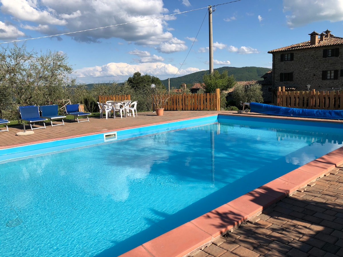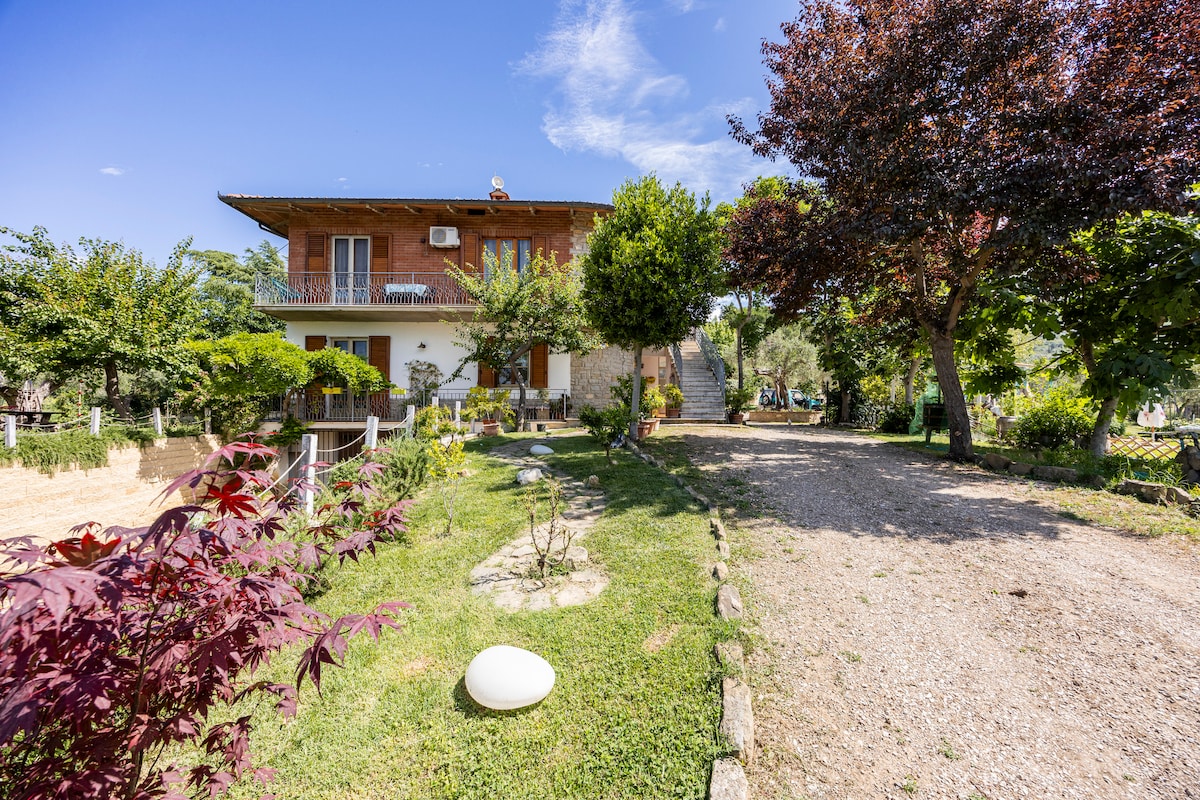 The apartment is on the second floor of a two-story single-family home, surrounded by land, children's playground and lots of greenery, It is very comfortable, quiet and the rooster of the house wakes you up. Apartment near many strategic points, two km from the Siena-Perugia junction, 30 km from Perugia and 40 km from Siena, 20 from nearby Cortona and also very convenient to reach islands and beautiful Assisi. Relax with the whole family in this quiet accommodation.