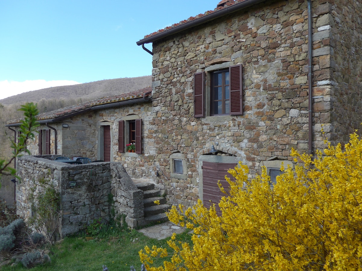 Small stone ruin restored in the shade of the woods, a corner of paradise suspended between Tuscany and Umbria, ideal for relaxing and experiencing atmospheres of the past. It is located near the pretty Medieval village of Pierle, dominated by an 11th century castle. Formerly used as a chestnut dryer (metato), the small ruin has been renovated while preserving the original characteristics and with an inspiration given by the ancient Tuscan farmhouses typical of the area.
