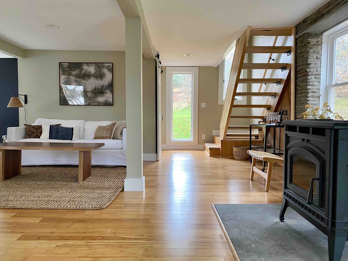 Nestled in the heart of the Catskills and just a 2.5-hour drive from NYC, escape to the perfect fall retreat where you can reconnect with nature and enjoy the serene beauty of the season. This historic gem underwent a recent restoration, marrying its saw mill heritage with contemporary luxuries, including a Nest thermostat, smart speakers, keyless entry, and fast wifi. Original exposed post and beam construction and Scandinavian-inspired design make for a unique and cozy atmosphere.