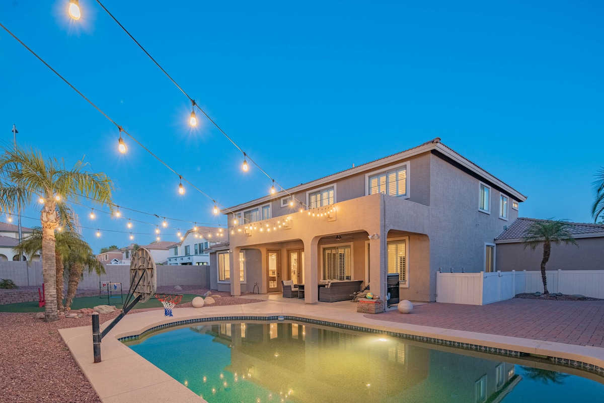 Gilbert Downtown famous restaurants are close by. This house is truly an entertainment paradise. The thought put into the theming will surprise you. Backyard features cornhole game, air hockey table, fire pit, BBQ, Swim Spa, Hot Tub, string lights, seating area pergola & much. Three bedrooms, 2 king beds and 2 full size beds. Large flat screen TV's, fireplace, family room, dinning, living room, arcade room, 2-1/2 bathrooms, washer & dryer, outdoor counter tops, quartz counter tops.